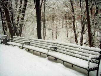 Keywords: park benches bench snow ice winter trees nature outside scenic