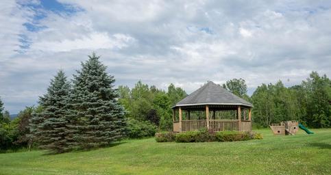 Keywords: park gazebo sky clouds nature green trees wood garden landscape architecture exterior outdoor playground