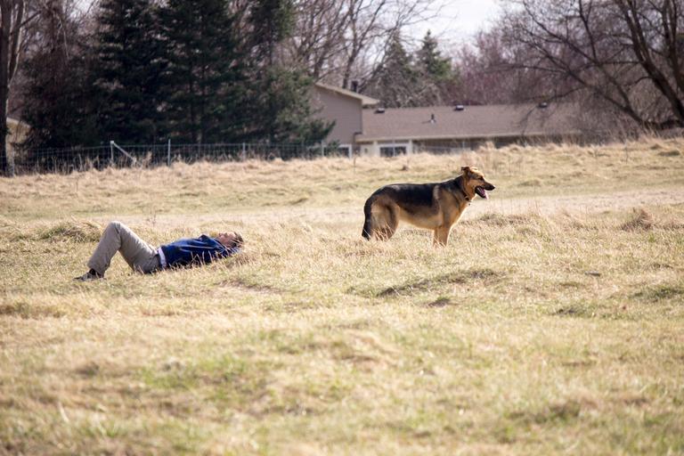 Keywords: park german shepard dog outdoors resting animals people pets