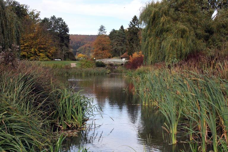 Keywords: park kurpark lake water pond bridge malerwinkel painter views idyll reed plant