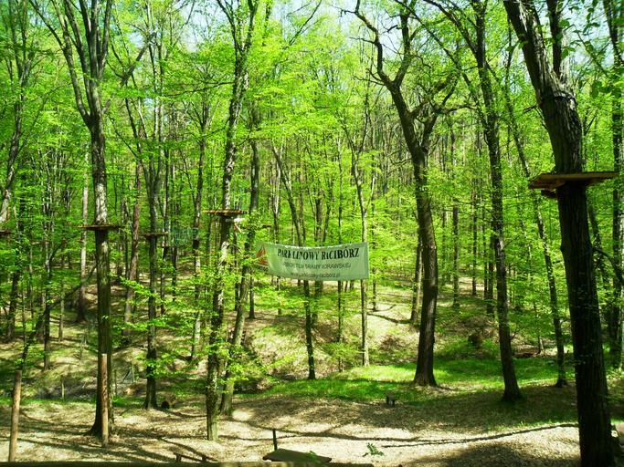 Keywords: Park linowy, Racibórz 4.JPG pl Park linowy w lesie Obora w Raciborzu own Olos88 Cc-zero Moravian Gate Arboretum Sports venues in Racibórz Ropes courses