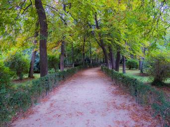 Keywords: park outdoors tree flowers nature spring plant madrid color garden colors leaves colorful brown autumn flower sidewalk path forest