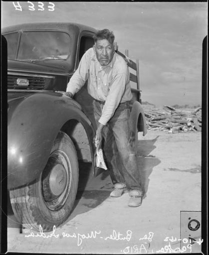 | Keywords: Parker, Arizona. Ben Butler, a Mojave and the most successful farmer on the Colorado Indian Reserva . . . - NARA - 536267.jpg Mojave and the most successful farmer on the Colorado Indian Reserva Scope and content The full caption for this photograph reads Parker Arizona Ben Butler a Mojave and the most successful farmer on the Colorado Indian Reservation Farmers and gardeners among evacuees of Japanese ancestry will be given opportunity to follow their callings at War Relocation Authority center on the reservation General notes 536267 Local identifier 210-G-A333 Department of the Interior War Relocation Authority 02/16/1944 - 06/30/1946 NARA-Author Albers Clem Photographer 8452194 <br /> Still Picture Records Section Special Media Archives Services Division NWCS-S National Archives at College Park 8601 Adelphi Road College Park MD 20740-6001 1942-04-10 Record group Record Group 210 Records of the War Relocation Authority 1941 - 1989 Record group ARC 537 Central Photographic File of the War Relocation Authority compiled 1942 - 1945 Series ARC 536000 File unit File unit ARC Variant control numbers NAIL Control Number NWDNS-210-G-A333 Other versions <gallery> File Parker _Arizona _Ben_Butler _a_Mojave_and_the_most_successful_farmer_on_the_Colorado_Indian_Reserva_ _ _ _-_NARA_-_536267 tif tif File Parker _Arizona _Ben_Butler _a_Mojave_and_the_most_successful_farmer_on_the_Colorado_Indian_Reserva_ _ _ _-_NARA_-_536267 jpg jpg </gallery> NARA-cooperation PD-USGov Mohave Men of the United States Trucks in the United States La Paz County Arizona Black and white photographs of men Black and white photographs of Arizona Pickup trucks 1941 Ford trucks Ford V8 trucks 1940-41 |