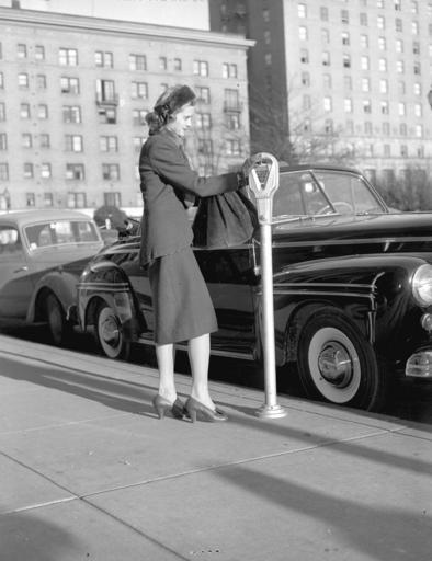 | Keywords: blackandwhite monochrome black and white Demonstration of new parking meters on the 700-block Hornby Street, just south of West Georgia Street, in Vancouver, BC. Photograph taken November 12, 1946. The meter is the same model as the world's first parking meter used in Oklahoma City in 1935. [City of Vancouver Archives; Steffens-Colmer, photographer] Demonstration of new parking meters on the 700-block Hornby Street, just south of West Georgia Street, in Vancouver, BC. Photograph taken November 12, 1946. The meter is the same model as the world's first parking meter used in Oklahoma City in 1935. [City of Vancouver Archives; Steffens-Colmer, photographer] |