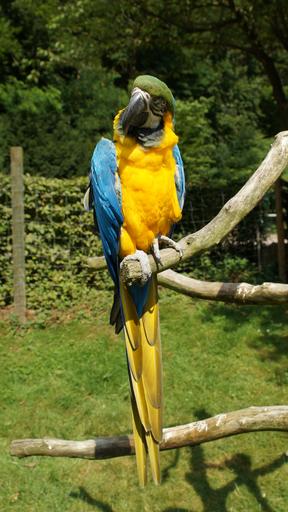 Keywords: parrot ara bird colorful yellow macaw kurpfalz-park home guard ara ararauna