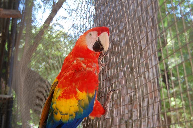 Keywords: parrot ave animals macaw color bird cage peak tropical bird zoo captivity red front exotic bird nature colors blue pen prison plumage curious animal parrot at home orange