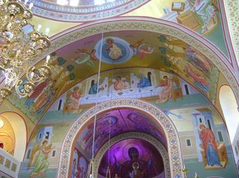 Keywords: Particolare cattedrale ortodossa Fira, Santorini.JPG en A detail of the interior of the Orthodox Cathedral of Candlemas of the Lord in the village of Fira Santorini Island Greece it Un particolare dell'interno della cattedrale ortodossa della Candelora del Signore nel villaggio di Fira isola di Santorini Grecia own Zitumassin Cathedral of Candlemas of the Lord - Interior |