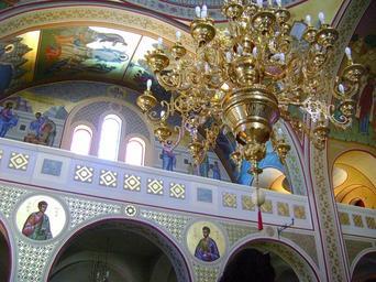 Keywords: Particolare cattedrale ortodossa Fira, Santorini 1.JPG en A detail of the interior of the Orthodox Cathedral of Candlemas of the Lord in the village of Fira Santorini Island Greece it Un particolare dell'interno della cattedrale ortodossa della Candelora del Signore nel villaggio di Fira isola di Santorini Grecia own Zitumassin 11/08/2009 Cathedral of Candlemas of the Lord - Interior |