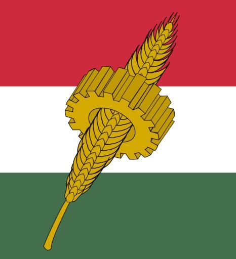 | Keywords: Party of National Unity Hungary logo.svg en Logo of the Party of Hungarian Life originally known as the Party of National Unity of Hungary The logo displays symbolization of the working class the cogwheel representing manufacturing workers and the sheaf of wheat representing agricultural workers that is placed overtop of the Hungarian red-white-green tricolour flag own R-41 Cc-zero History of Hungary by theme Hungary in World War II Fascism in Hungary | ||||