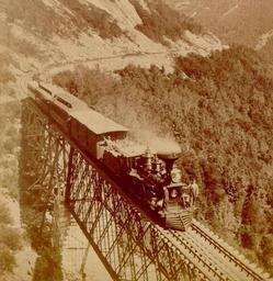 | Keywords: Pass of the Crawford Notch and Train.jpg Pass of the Crawford Notch and Train -- this shows a Portland Ogdensburg Railroad train crossing the Willey Brook Bridge 400 feet 122 meters long and 94 feet 29 meters high which spans the chasm between Mount Willey and Mount Willard Reproduced from an original stereographic card published by Kilburn Brothers Littleton New Hampshire circa 1880 s Benjamin West Kilburn 1827-1909 Copyright expired as publication of stereographic card pre-dates 1923 -- see below 150px PD-US PD-Old Original upload log en wikipedia Pauk CommonsHelper page en wikipedia Pass_of_the_Crawford_Notch_and_Train jpg 2009-12-13 19 34 Hugh Manatee 990×1017× 199723 bytes <nowiki>Pass of the Crawford Notch and Train -- from an original c 1880s stereographic card published by Kilburn Brothers Littleton New Hampshire This shows a Portland Ogdensburg Railroad train crossing the Willey Brook Bridge </nowiki> Rail transport in Maine Rail transport in New Hampshire Rail transport in Vermont Maine Central Railroad 1943 disestablishments 1886 in rail transport in the United States 1886 establishments in the United States Companies established in the 1880s 1880s photographs Kilburn brothers 4-4-0 locomotives of the United States |