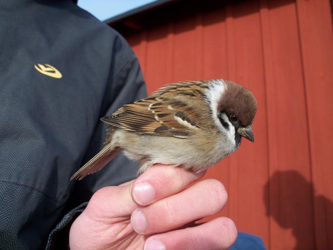 Keywords: Passer montanus ringed by Landsort Bird Observatory-1.JPG sv En pilfink Passer montanus ringmärkt vid Landsorts fyr på Landsorts södra udde på ön Öja syd om Nynäshamn i Södermanland i Stockholms län i Sverige Denna ringmärkning utförs av Landsorts fågelstation en A Eurasian Tree Sparrow Passer montanus ringed at Landsort Lighthouse on the south cape of the island Öja Landsort south of Nynäshamn in Södermanland in Stockholm County in Sweden Landsort Bird Observatory is responsible for the ringing 2011-10-08 own Calandrella cc-zero Uploaded with UploadWizard Passer montanus Birds being ringed Passeriformes in Sweden |