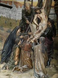 Keywords: passion good friday church christ christianity crucifixion crown of thorns jesus faith christian descent from the cross portugal sculpture death grieve mourning suffering historically