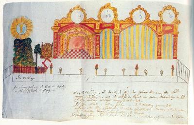 Keywords: Passionsspiel buehne gmuend.jpg Bühne des Schwäbisch Gmünder Passionsspiels Zeichnung von Dominikus Debler in seiner Chronik Stadtarchiv Schwäbisch Gmünd Bd IX S 299 Die Chronik des Dominikus Debler 1756-1836 2006 S 114 Anfang 19 Jahrhundert Dominikus Debler PD-Art Passionsspiel Schwäbisch Gmünd Dominikus Debler Theatre in art |