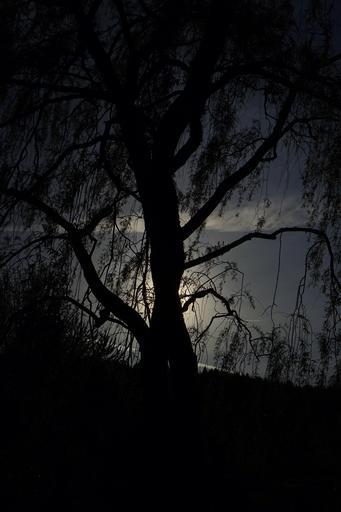Keywords: pasture tree back light aesthetic dark threatening night blackness darkness moonlight