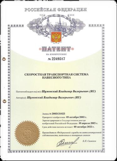 | Keywords: Patent STRAUS.png  ru Патент на изоб етение  2249517 Россия Т анспо тная система Шумовского «СТ РАYС»  СТ РАУС Шумовского en Invention patent No 2249517 Russia 2009-10-07 http //monosota ru/ Владими Вале ьевич Шумовский other versions PD-RU-exempt Insignia cc-by-sa-4 0 Transport Documents Signed by Boris Simonov Patent Certificates from Russia |