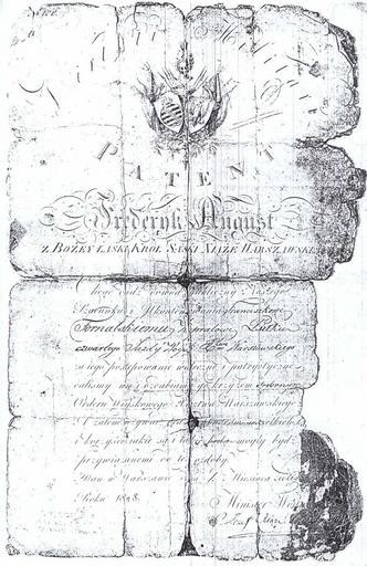 Keywords: Patent Virtuti Militari 1808.jpg Oryginalny patent na order Virtuti Militari dla Franciszka Fornalskiego z 1808 roku podpisany osobiście przez księcia Józefa Poniatowskiego Patent ten pochodzi z pamiątek rodzinnych grafika jest wykonanym przeze mnie skanem Treść patentu VIRTUTI MILITARI PATENT Frederyk August z Bożey Łaski Król Saski Xiążę Warszawski Chcąc dadź dowód publiczny Naszego Szacunku i Ukontentowania Franciszkowi Fornalskiemu Kapralowi Pułku czwartego Jazdy Woysk Xięztwa Warszawskiego za iego postępowanie waleczne i patryotyczne daliśmy mu i ozdabiamy go Krzyżem srebrnym Orderu Woyskowego Xięztwa Warszawskiego A zatem używać będzie honorów wszelkich i korzyści iakie są i iakie będą mogły bydź przywiązanemi do tey ozdoby Dań w Warszawie dnia 1go Miesiąca Lutego Roku 1808 Minister Woyny Józef Xiąże Poniatowski PD-old original upload log page pl wikipedia Patent_Virtuti_Militari_1808r jpg 2007-01-06 15 43 Czestomir 1028×1584× 283573 bytes <nowiki>Oryginalny patent na order Virtuti Militari dla Franciszka Fornalskiego z 1808 roku podpisany osobiście przez księcia Józefa Poniatowskiego Patent ten pochodzi z pamiątek rodzinnych grafika jest wykonanym przeze mnie skanem </nowiki> Virtuti Militari |