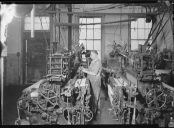 Keywords: Paterson, New Jersey - Textiles. Weaver operating four-loom system. He is shown removing a used-up quill from the... - NARA - 518541.jpg Scope and content General notes 518541 Local identifier 69-RP-302 Federal Works Agency Work Projects Administration National Research Project ca 1941 - ca 1942 NARA-Author Hine Lewis Wickes 1874-1940 Photographer 1122914 <br /> Paterson Passaic New Jersey United States North and Central America inhabited place 4202736 40 917 -74 167 <br /> Still Picture Records Section Special Media Archives Services Division NWCS-S National Archives at College Park 8601 Adelphi Road College Park MD 20740-6001 1936 - 1937 Record group Record Group 69 Records of the Work Projects Administration 1922 - 1944 Record group ARC 398 Lewis Hine Photographs for the National Research Project compiled 1936 - 1937 Series ARC 518291 File unit File unit ARC Variant control numbers NAIL Control Number NWDNS-69-RP-302 Other versions <gallery> File Paterson _New_Jersey_-_Textiles _Weaver_operating_four-loom_system _He_is_shown_removing_a_used-up_quill_from_the _-_NARA_-_518541 tif tif File Paterson _New_Jersey_-_Textiles _Weaver_operating_four-loom_system _He_is_shown_removing_a_used-up_quill_from_the _-_NARA_-_518541 jpg jpg </gallery> NARA-cooperation PD-USGov Check categories-NARA 2011 October 20 Textile industry in New Jersey Silk weaving
