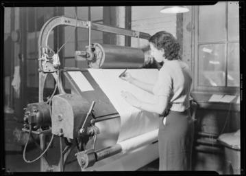 | Keywords: Paterson, New Jersey - Textiles. Examining and picking. The fabric is rolled from the lower beam over this board and... - NARA - 518543.jpg Scope and content General notes 518543 Local identifier 69-RP-304 Federal Works Agency Work Projects Administration National Research Project ca 1941 - ca 1942 NARA-Author Hine Lewis Wickes 1874-1940 Photographer 1122914 <br /> Paterson Passaic New Jersey United States North and Central America inhabited place 4202736 40 917 -74 167 <br /> Still Picture Records Section Special Media Archives Services Division NWCS-S National Archives at College Park 8601 Adelphi Road College Park MD 20740-6001 1936 - 1937 Record group Record Group 69 Records of the Work Projects Administration 1922 - 1944 Record group ARC 398 Lewis Hine Photographs for the National Research Project compiled 1936 - 1937 Series ARC 518291 File unit File unit ARC Variant control numbers NAIL Control Number NWDNS-69-RP-304 Other versions <gallery> File Paterson _New_Jersey_-_Textiles _Examining_and_picking _The_fabric_is_rolled_from_the_lower_beam_over_this_board_and _-_NARA_-_518543 tif tif File Paterson _New_Jersey_-_Textiles _Examining_and_picking _The_fabric_is_rolled_from_the_lower_beam_over_this_board_and _-_NARA_-_518543 jpg jpg </gallery> NARA-cooperation PD-USGov Textile inspection tables |