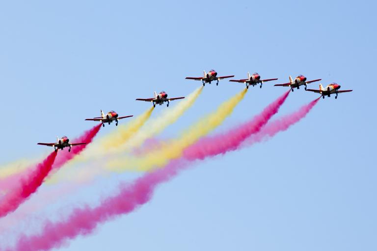 Keywords: patrulla aguila spain fighter jets sliač airshows blue sky aircrafts colored smoke eagle watch