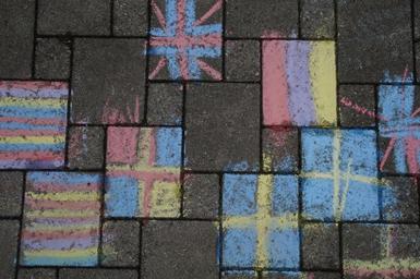 Keywords: pattern background texture colorful child children straßenkreide chalk street chalk painted ground four corner slabs floor plates