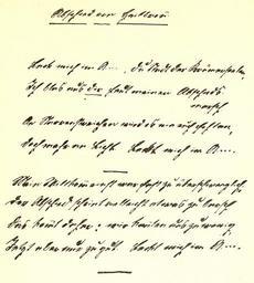Keywords: Paul Hegelmaier Abschiedsgedicht Kraemerseelen.jpg Abschiedsgedicht des Heilbronner OberbĂĽrgermeisters Paul Hegelmaier 1847 “1912 an die Stadt Heilbronn Text Abschied von Heilbronn<br /> Leck mich im A du Stadt der Krämerseelen <br /> Ich blas aus dir heut meinen Abschiedsmarsch <br /> An Narrenstreichen wird es nie euch fehlen <br /> doch mehr an Licht Leckt mich im A <br /> Mein Willkomm einst war fast zu ĂĽberschwenglich <br /> Der Abschied scheint vielleicht etwas zu barsch <br /> Das kommt daher wir kannten uns zu wenig <br /> Jetzt aber nur zu gut Leckt mich im A Parting poem of Heilbronn mayor Paul Hegelmaier 1847 “1912 dedicated to the city Stadtarchiv Heilbronn http //www stadtarchiv-heilbronn de/index php d /stadtgeschichte/stichworte/k/kraemerseelen/ f cont_stadtgeschichte htm anchor _stadtgeschichte_stichworte_k_kraemerseelen_ anchor _stadtgeschichte_stichworte_k_kraemerseelen_ _stadtgeschichte_stichworte_k_kraemerseelen_ http //www stadtarchiv-heilbronn de/index php d /stadtgeschichte/stichworte/k/kraemerseelen/ f cont_stadtgeschichte htm anchor _stadtgeschichte_stichworte_k_kraemerseelen_ anchor _stadtgeschichte_stichworte_k_kraemerseelen_ _stadtgeschichte_stichworte_k_kraemerseelen_ circa 1904 “1912 was circulated in printed form most likely after his death Paul Hegelmaier 1847 “1912 pd PD-old Paul Hegelmaier Documents of Heilbronn German Kurrent