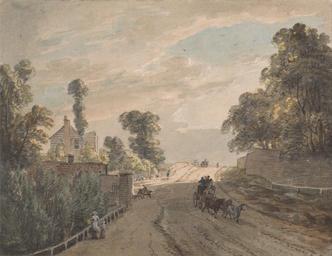 Keywords: Paul Sandby - The Bayswater Turnpike - Google Art Project.jpg Inscribed in graphite lower center near the Turnpike at Bayswater looking towards London ; inscribed on back in graphite upper center 12 1/2 x 16 ; in graphite center Near the Turnpike at Bayswater towards London Paul Sandby RA ; in graphite lower right J1326 Inscription _Signed_and_Dated Signed in pen and brown ink lower right P Sandby Not on View Watercolor pen and black and gray ink on medium slightly textured wove paper mounted on card sky trees turnpike road coaches landscape special url_id MwGKE46RgndN6A PD-old-100-1923 1809 Google Art Project works by Paul Sandby Topographical views by Paul Sandby |