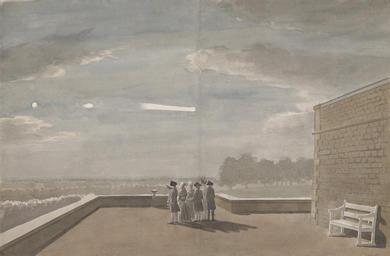 | Keywords: Paul Sandby - The Meteor of August 18, 1783, as seen from the East Angle of the North Terrace, Windsor Castle - Google Art Project.jpg Google Art Project watercolor Nottingham 1731 London 1809 Paul male 2325470 Sandby British 1731 - 1809 /collection/yale-center-for-british-art/artwork/the-meteor-of-august-18-1783-as-seen-from-the-east-angle-of-the-north-terrace-windsor-castle-paul-sandby/2385850/ Paul Sandby Artist /artist/paul-sandby/4132092/ 4132092 /collection/yale-center-for-british-art/ Yale Center for British Art 2305845 http //britishart yale edu/ 2/23/2012 9 59 02 PM /collection/yale-center-for-british-art/artwork/the-meteor-of-august-18-1783-as-seen-from-the-east-angle-of-the-north-terrace-windsor-castle-paul-sandby/2385850/ 1783 1783 comets angle east north astronomy walls trees terrace bench genre subject landscape Watercolor on medium cream moderately textured laid paper 318 2385850 False 1783 3/25/2012 6 16 33 PM YCBA/lido-TMS-4107 http //collections britishart yale edu/vufind/Record/1668391 Yale Center for British Art Paul Mellon Collection painting 1780 1790 Scotland Creation w483 x h318 cm 1783 False 1 51928783382789 Volume the-meteor-of-august-18-1783-as-seen-from-the-east-angle-of-the-north-terrace-windsor-castle-paul-sandby The Meteor of August 18 1783 as seen from the East Angle of the North Terrace Windsor Castle m 483 Inscribed in graphite verso upper center East end of With the meteor ; in graphite upper right with two sketches of the meteor Inscription _Signed_and_Dated Signed in pen and brown ink lower left Pl Sandby Not on View Watercolor on medium cream moderately textured laid paper comets angle east north astronomy walls trees terrace bench genre subject landscape special url_id xQFDA5I0V1Q4lQ PD-old-100-1923 1809 Google Art Project works by Paul Sandby Topographical views by Paul Sandby Meteoroids Astronomical events 1783 Comets in art Paintings of Windsor Castle |