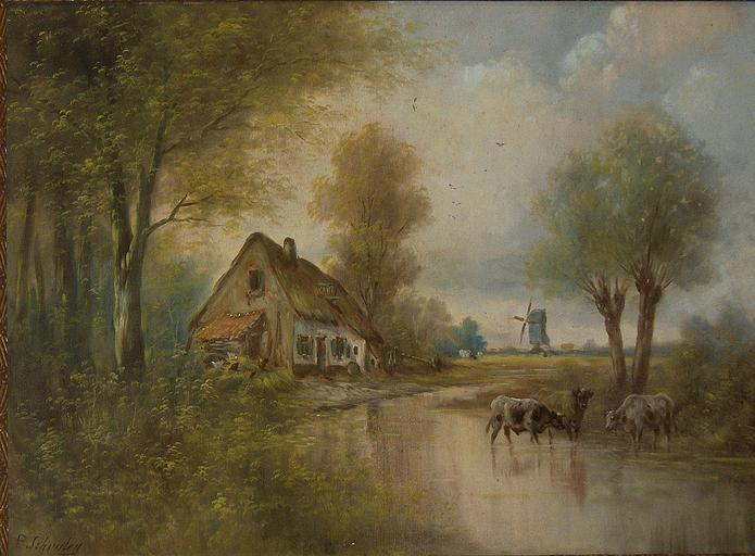 | Keywords: Paul Schouten 003.JPG en Landscape with cows small farm and windmill oil painting on canvas 60 x 81 cm by Paul Schouten 1860-1922 ; private collection own photo made at an art auction in Belgium Georges Jansoone JoJan - artwork by Paul Schouten 2010-07-11 PD-Old cc-by-sa-3 0 Paul Schouten Landscape paintings |
