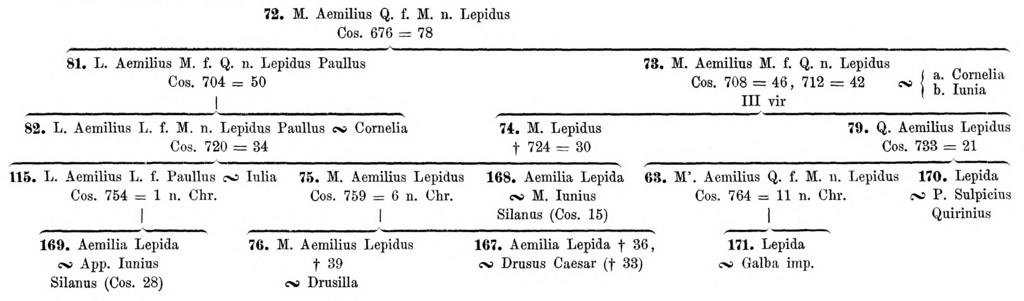 | View Original: | Pauly-Wissowa I,1, 0562a - family tree Aemilii Lepidi.jpg (2416x711) | |||