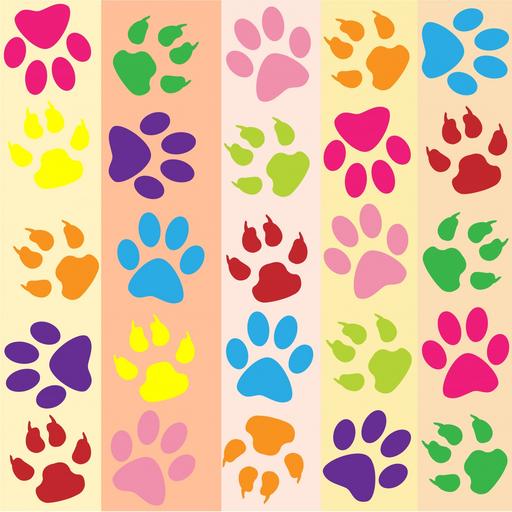 Keywords: paw print paw prints background wallpaper pattern colorful red orange green blue pink purple animal dog cat pet paper art design shape