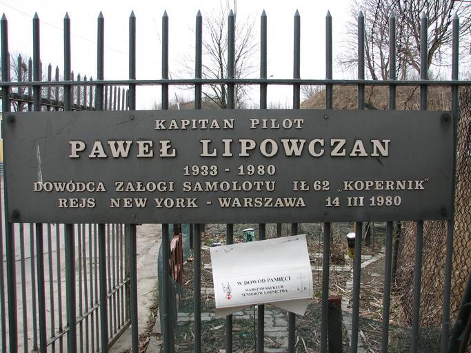 Keywords: Pawel Lipowczan tablica pamiatkowa.JPG pl Tablica upamiętniająca kpt Pawła Lipowczana - dowódcę załogi samolotu Mikołaj Kopernik który 14 marca 1980 roku rozbił się w Warszawie podczas podchodzenia do lądowania Warszawa ul Lipowczana own Grzegorz Petka 2009-03-22 Paweł Lipowczan Things named after Nicolaus Copernicus |