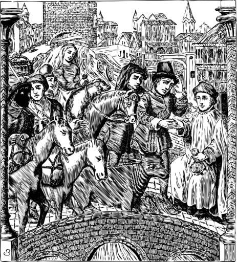 Keywords: Payint bridge toll.svg en vectorized painting Paying Toll on passing a Bridge From a Painted Window in the Cathedral of Tournay Fifteenth Century png 2014-10-29 18 20 18 own Salvor other versions cc-zero Uploaded with UploadWizard Bridges in art |