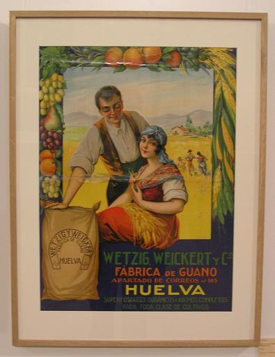 | Keywords: PB300472.JPG M Diago author Fabrica de Guano Wetzig Weickert y Cía Guano Factory Wetzig Weickert Co 1920 Huelva Exhibition Un siglo de carteles en la agricultura española 1870-1960 A century of posters in the Spanish agriculture held in the Ministerio de Agricultura Pesca y Alimentación Madrid Spain November 15th to 30th 2005 The exhibition was organized by the state-owned enterprise SAECA The exhibited material belong to Carlos Velasco Economics teacher by the UNED The copyright of the poster has expired according to the Spanish law I as photographer of the poster also release my rights according to the Spanish law Therefore this picture is nowadays in the public domain Author Mr Tickle Date November 30th 2005 2005-11-30 own assumed Mr Tickle Agriculture in art Fertilizers Province of Huelva Guano Advertising posters of Spain Andalusia in the 1920s |