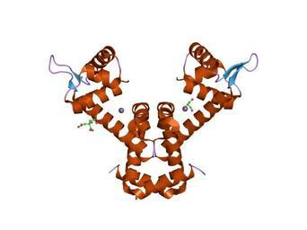 Keywords: PDB 2ev6 EBI.jpg All alpha proteins DNA or RNA-binding 3-helical bundle Winged helix DNA-binding domain Iron-dependent repressor protein Manganese transport regulator MntR EBI License 2ev6 November 16 2008 Manganese transport regulator MntR Files uploaded by Nichalp's script |