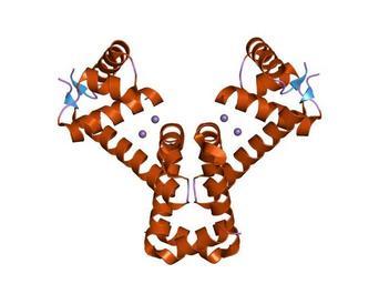 Keywords: PDB 2f5d EBI.jpg All alpha proteins DNA or RNA-binding 3-helical bundle Winged helix DNA-binding domain Iron-dependent repressor protein Manganese transport regulator MntR EBI License 2f5d November 16 2008 Manganese transport regulator MntR Files uploaded by Nichalp's script |