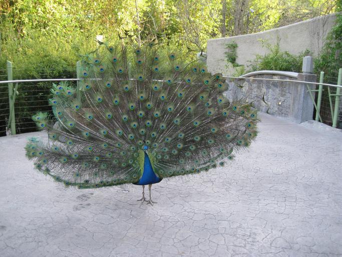 Keywords: peacock bird feathers tail zoo nature blue wildlife peafowl elegant
