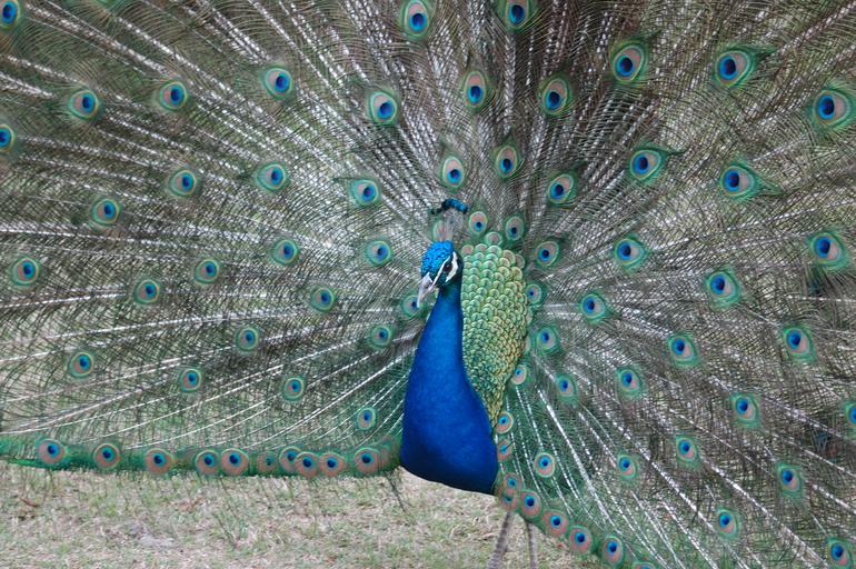 Keywords: peacock peafowl bird blue head feather tail colorful green plumage animal beak vibrant nature elegant pattern attraction male fauna aviary courting eye colors wildlife ritual charming posing natural ornamental pose
