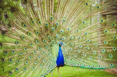 Keywords: peacock plumage bird peafowl fantail tail vibrant exotic tropical feathers green colorful wildlife turquoise natural fowl plume pattern