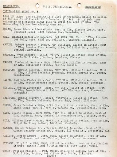 Keywords: pearl harbor pearlharbor attack december 7 1942 december71942 world war two worldwartwo document text writing Document from the Pearl Harbor Dispatch Special Collection which details the attack and the days following it. Repository: San Diego Air and Space Museum Archive Document from the Pearl Harbor Dispatch Special Collection which details the attack and the days following it. Repository: San Diego Air and Space Museum Archive |