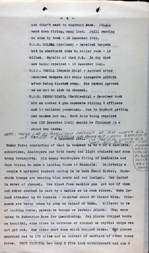 Keywords: pearl harbor pearlharbor attack december 7 1942 december71942 world war two worldwartwo text document Document from the Pearl Harbor Dispatch Special Collection which details the attack and the days following it. Repository: San Diego Air and Space Museum Archive Document from the Pearl Harbor Dispatch Special Collection which details the attack and the days following it. Repository: San Diego Air and Space Museum Archive |