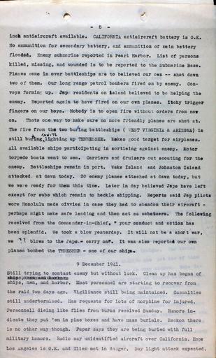 Keywords: pearl harbor pearlharbor attack december 7 1942 december71942 world war two worldwartwo text document Document from the Pearl Harbor Dispatch Special Collection which details the attack and the days following it. Repository: San Diego Air and Space Museum Archive Document from the Pearl Harbor Dispatch Special Collection which details the attack and the days following it. Repository: San Diego Air and Space Museum Archive |