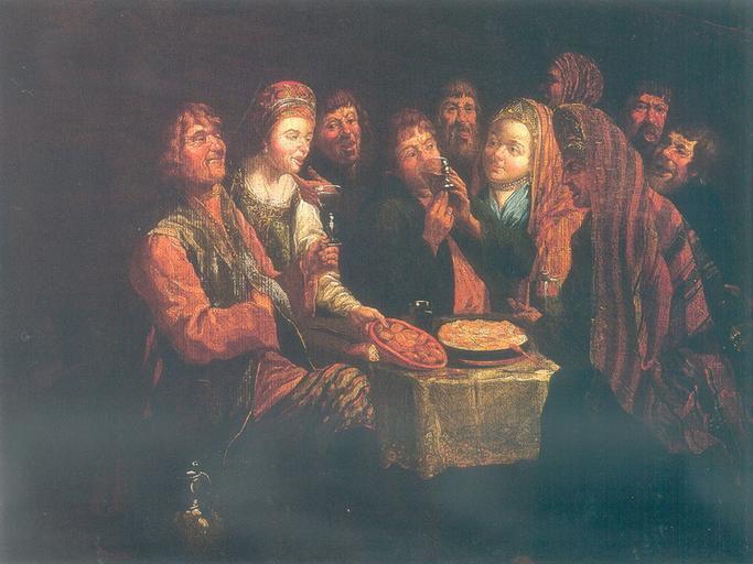 | Keywords: Peasants' feast by A.I.Vishnyakov (1760-70s, Russian museum).jpg  А И Вишняков К естьянская пи ушка Конец 1760-х  начало 1770-х Холст масло 47 5 х 59  а обо оте А игиналъ Ал Вишнекова Пост в 1918 из ОПХ Пет ог ад Ж-3144 Ка тина Александ а Вишнякова  одно из самых  анних изоб аже- ний к естьянских т апез Г отеск свойственный всей сцене подобен изоб ажению г убой нату ы ха акте ной для голландских и фла- мандских ка тин масте ов XVII века кото ым под ажали и  усские художники се едины XVIII века Холст масло 47 5 х 69  а обо оте надпись А игиналъ Ал Вишнекова Поступила 1918 из ВОПХ В Каталоге 1980 значится п оизведением художника XVIII века Ал Вишнекова и не дати овано По высказанному    олевой и Э  Белютиным п едположению авто является младшим сыном И Я Вишнякова    олева и Э  Белютин дати уют ка тину  убежом 1760-х - 1770-х  олева Белютин 1965 с 162 Я В Б ук также относит в емя создания К естьянской пи ушки к 1760-м - началу 1770-х Б ук 1990 с 129 250 http //www museum ru/imgB asp 44347 Конец 1760-х  начало 1770-х А И Вишняков Faces of Russia GRM 2012 Files uploaded by Shakko from various sources 18th-century paintings in the Russian Museum Alexandr Ivanovich Vishnyakov Paintings of Russian peasants PD-old |