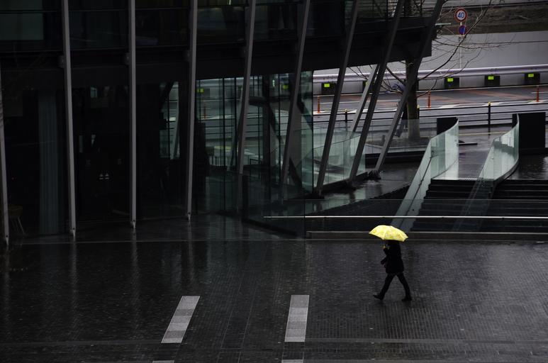 Keywords: pedestrian rain people person walking japan osaka umbrella wet crossing rainy yellow alone dark