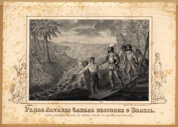 Keywords: Pedro Alvares Cabral descobre o Brasil.jpg Pedro Alvares Cabral descobre o Brazil / Sendim - S l s n 1839 Lisboa Off Lith de M e l Luiz - 1 gravura litografia p b - Collecção de memórias relativas às façanhas dos portuguezes na India Biblioteca Nacional de Portugal http //purl pt/4991<br/>Cota local e-359-v Biblioteca Nacional de Portugal fol 30 5 x 20 6 cm 1839 Creator Sendim Maurício José do Carmo 1786-1870 Other versions <gallery>File Pedro_Alvares_Cabral_descobre_o_Brasil_borderless jpg Borderless </gallery> PD-old-auto-1923 1870 1500 in art Brazil in history paintings Discovery of Brazil Images from the Biblioteca Nacional de Portugal Maurício José do Carmo Sendim Pedro Álvares Cabral |