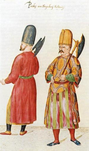 | Keywords: Peiks.png en Two members of the select Peiks guard Janissary halberdiers of the Ottoman Sultans 2011-06-15 Γεννάδειος Βιβλιοθήκη Ιστορία του ελληνικού έθνους - Τόμος Ι' - Ο ελληνισμός υ ό ξένη κυριαρχία ερίοδος 1453-1669 σελ 35 Unknown early 16th-century artist PD-Art Uploaded with UploadWizard Janissaries Guards of heads of state |