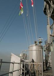 | Keywords: Peleliu hoists the broom to signal 'clean sweep' of inspections 120516-N-LQ926-002.jpg en Quartermaster Seaman Recruit Sarah N Higginbopham adjusts the rigging on the USS Peleliu's forward starboard yardarm while pulling into Naval Base San Diego May 16 The Navy tradition of flying the broom signifies the ship has passed all current inspections successfully also known as a clean sweep 2012-05-16 U S Navy photo by Mass Communication Specialist Seaman Alex Van'tLeven https //www dvidshub net/image/585006 120516-N-LQ926-002 2012-05-22 05 37 SAN DIEGO CA US PD-USGov-Military-Navy Naval Base San Diego USS Peleliu LHA-5 Images from DoD uploaded by Fæ |