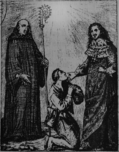 Keywords: Pelerinage des rois à st-MArcoul.JPG fr image in ː Apologie pour le pélerinage de nos roy à Corbeny au tombeau de st-MArcoul par l'abbé Nanteuil 1638 XVIII Bbliothèque Royale author other versions Custom license marker 2016 05 04 PD-old Saint Marcouf Images de la BNF Royal touch 1638 in France |
