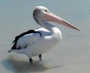 Keywords: pelican american white bird close up waterfowl wildlife nature seabird bill standing
