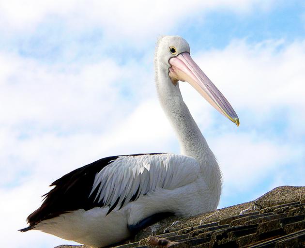 Keywords: pelican bird wildlife nature perched roof building icon beak wild feather looking