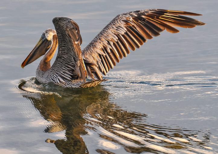 Keywords: pelican brown bird wildlife nature water animal florida coast wing avian feather outdoor scene